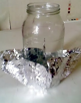 Need some instant but disposable glue or paint pots for teaching a class, but YOU have to pay for the excessories? Fold up some sections of foil 3 or 4 times. Make sure the foil edges AFTER folding are about 2 inches wider than a jar or tub. Now simply wrap the foil up & around the container your using as a master form. Pack the edges together as tight as you can. Slide off the form your using to make the foil pots then roll over & press down the top leading edges to keep it all held together & make the edges nice & neat.